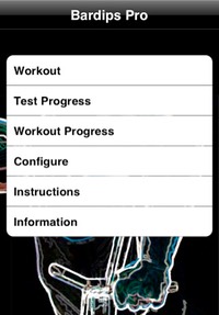 This application uses "the ladder" method to help you with your strength in bardips. You will do an initial test and the do two workouts each week in six weeks. There will be progress tests after week two and four and an final test after six weeks.